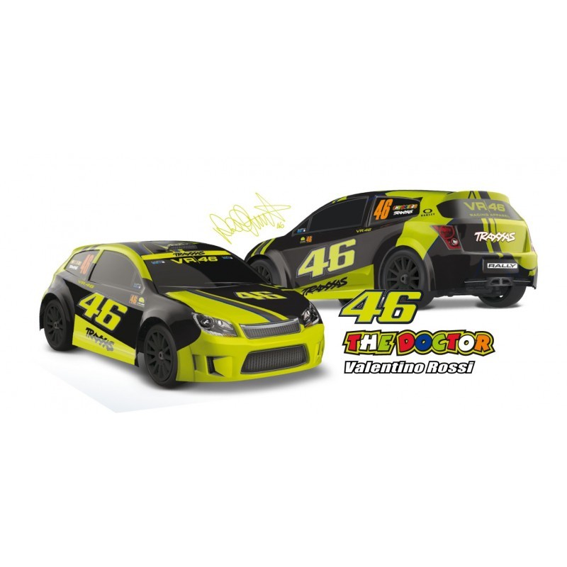 Automodello Radiocomandato Rally 4wd in scala 1:18, riproduttivo della livrea VR46 di Valentino Rossi solitamente usata al Monza Rally Show! Si tratta di un modello radiocomandato professionale Traxxas con licenza ufficiale VR46, con disponibilità di parti di ricambio per tutti i componenti, NON E' UN GIOCATTOLO! Il prodotto è pronto all'uso, già assemblato con carrozzeria verniciata, radiocomando di nuova generazione 2.4ghz, elettronica waterproof, completo di batteria,caricabatterie 12v e istruzioni in lingua italiana. Garanzia e assistenza post-vendita da noi fornita in qualità di distributori ufficiali dei prodotti Traxxas dal 1993!